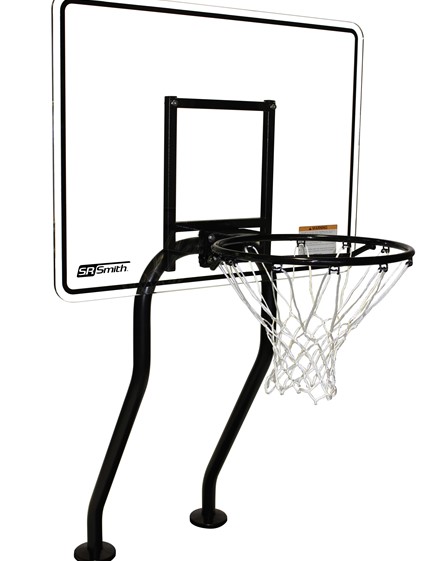 Specifications: 31cm setback to center of anchor. 48mm diameter, 304 stainless steel, vinyl coated frame. Regulation rim, net, basketball, needle, anchors and escutcheons are included.