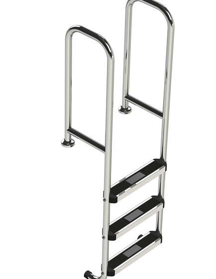 The Commercial Braced Narrow Ladder fits close to the pool wall, with rubber bumpers fitted to the ends to protect the pool wall where the ladder meets the side of the pool. Constructed of 316L Marine Grade Stainless Steel, the Narrow Pool Ladder is available in a variety of finish options: power coating, vinyl coating or a clear coat. See brochure for more details.