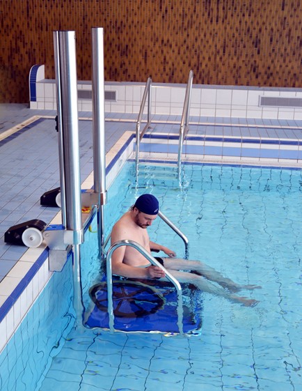 A hydraulic driven Mobile Platform Lift that allows users to descend into the pool from an aquatic chair or from a standing position. Designed with in-deck mounting points, electro-polished 316L stainless steel and high-density polyethylene construction. Using an in-built dual pressure control panel the user can independently descend into the pool.