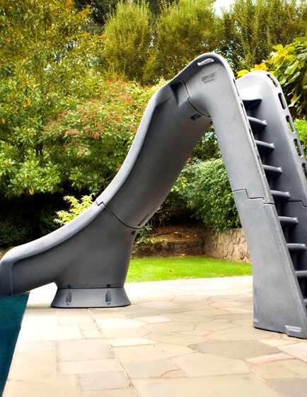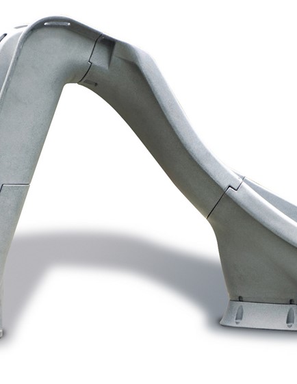 The Typhoon stands 2.2M tall to the top of the handrails, and is available in sandstone and gray granite colours. Molded-in handgrips provide maximum safety for smaller users and the unique water delivery system offers lots of rushing water for a fun ride. The Typhoon slide has been designed with safety in mind and is compliant with the U.S. Consumer Product Safety Commission Standards. Accommodates sliders up to 124kg.