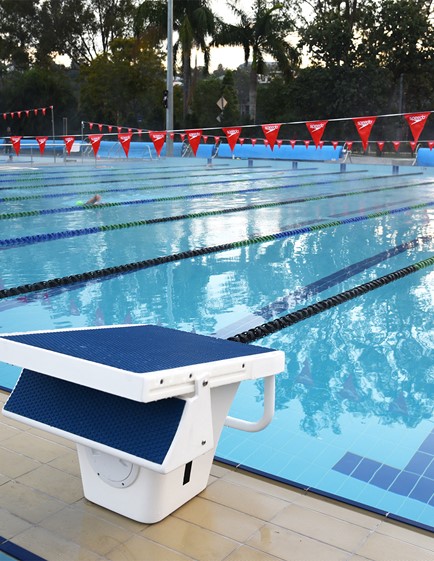 - Track start with longer range is adjustable to 5 positions, and tucks away for relay starts