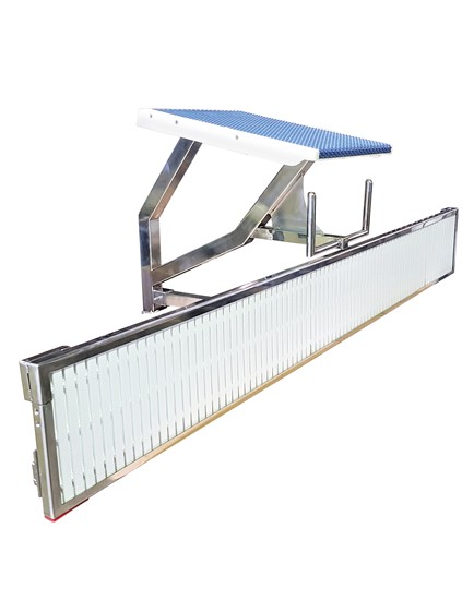 The Long Reach Block Turn Panel attaches to the starting block base and creates a non-slip endwall for tumble turns. Vertical adjustments can be made to accommodate the fall of the pool and optional attachment points are available for timing pads. The turn panel can be easily removed from the socket and stored when not in use. Available in two sizes: 2m & 2.4m width.