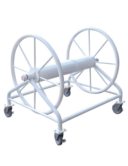 A lightweight, compact lane line storage reel that is ideal for use in program pools using mini (65mm) lane lines.