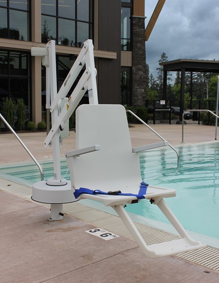 Designed for swimming facilities seeking to provide user-friendly access to their swimming pools. The Splash! Lift installs into your pool deck via anchor, and can be easily removed with the included caddy. Also available in an Extended Reach version for use on pools with gutter configurations requiring a longer reach.