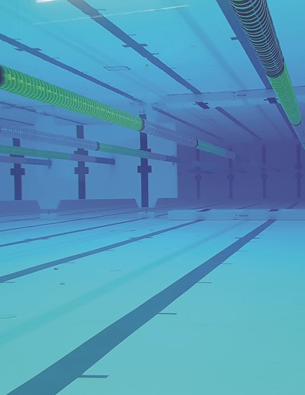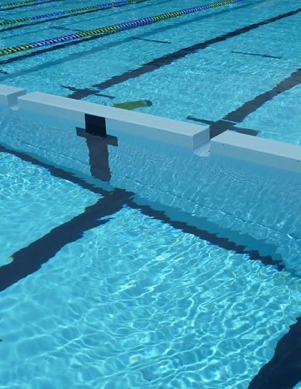 SwimWall Systems® provide unprecedented swimming pool flexibility and thus more revenue opportunities. SwimWalls are positioned on the pool floor when not in use. By filling the wall with air, it moves into a vertical position, forming a pool wall that is designed to fit around lane lines. This system effectively doubles the number of lanes, or offers the flexibility to have some swim lanes 50 metres in length, and others 25 metres.