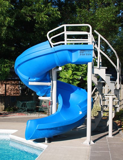 This multi-market, open- or closed-flume slide is available with a ladder or a spiral staircase - you decide! The flexibility of this slide is perfect for commercial or high-end residential applications. The high-volume water delivery system gives you up to 30 gallons of water per minute.