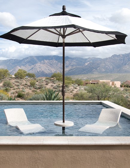 The Destination Lounger™ lets you relax and enjoy the pool without a splash. Elegant design and sturdy construction combine to give pool owners the opportunity to upgrade their sun shelf space with ease.