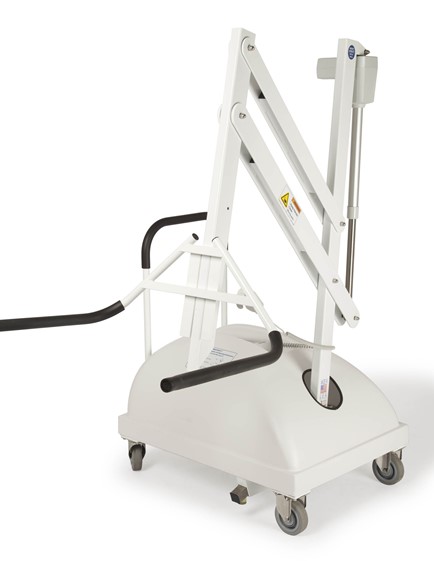 The Spine Board Attachment works with any standard spine board (not included). Simply remove the chair assembly by pulling the attachment pin and replace that assembly with the Spine Board Attachment. One person can easily extract an injured person from a pool, keeping the injured person fully supine during the procedure.
